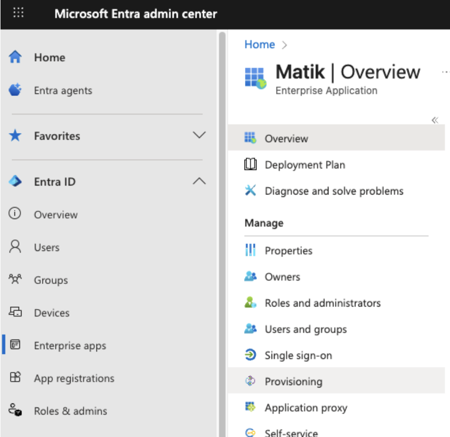 Matik is not currently listed in the Microsoft Entra Gallery, but we support Entra SSO via creating a custom (non-gallery) enterprise application. This section covers SSO configuration first, followed by optional SCIM-based user provisioning.